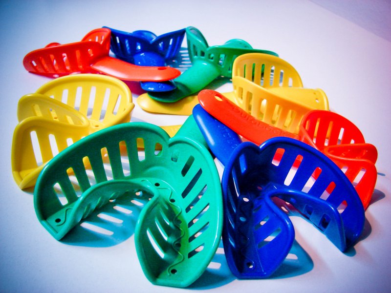 Cubetas Plásticas para toma de impresión, confeccionadas en resina de alto impacto con acabado antiadherente, flexibles, livianas y reutilizables, se presentan en 6 medidas diferentes.