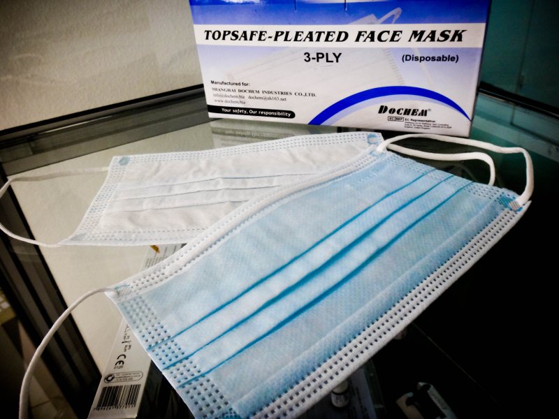 Barbijos descartables de fibra sintetica, plizado, con refuerzo para ajuste nasal. Viene en presentacion x 50 unidades